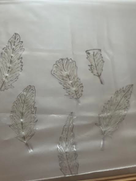 Egy speciális ragasztóval (dekupazs)rögzítem a selymet a búrához.Ecsettel szoktam ezt a folyamatot elvégezni,úgy vágom a selymet,hogy tökéletesen illeszkedjen a búrához.